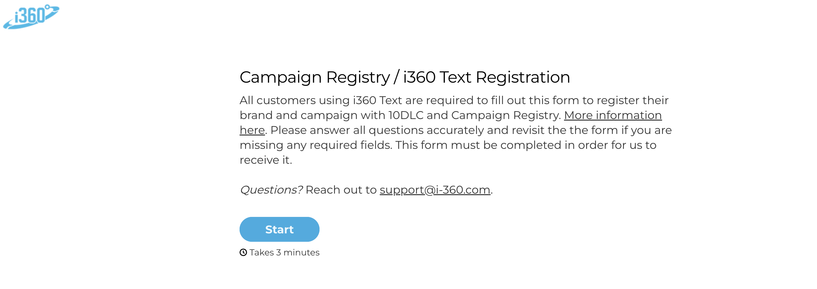 Q: Do I need a campaign website? Yes — while Campaign Verify itself does not require one, The Campaign Registry and Bandwidth (i360's texting partner) do require a campaign website as part of registration. Your site must have three specific sections: an Opt-In Section, a Privacy Policy, and a Terms & Conditions page — each with very specific language. See the full Text Registration Website Requirements and the Step 3 checklist in this guide for the complete details.