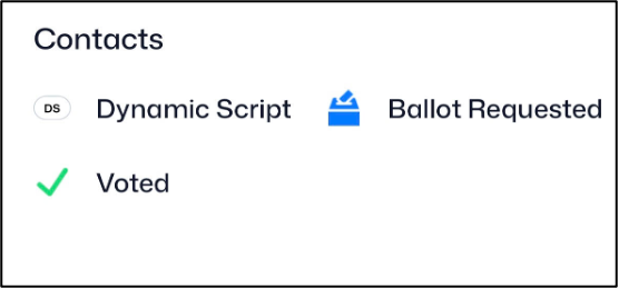 The second icon is a ballot box. This icon will denote anyone who has requested an absentee ballot, but has yet to return it. If someone has both the ballot box and the check box, that means they requested a ballot and subsequently returned it.
